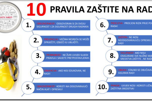 #PAZI: Budite svjesni svoje okoline i opasnosti koje su prisutne na mjestu na kojem radite. Budite pažljivi i povećajte svijest o zaštiti na radu. Budite svjesni svoje okoline i opasnosti koje su prisutne na mjestu na kojem radite: 1. Pridržavati se propisa i zakona kako bi se spriječilo ozlijeđivanje ili oštećenje. 2. Upoznati se sa…